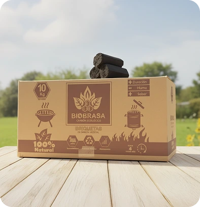 BioBrasa es carbón orgánico de alta eficiencia: menos humo, más duración y calor constante para que el asado fluya sin interrupciones.